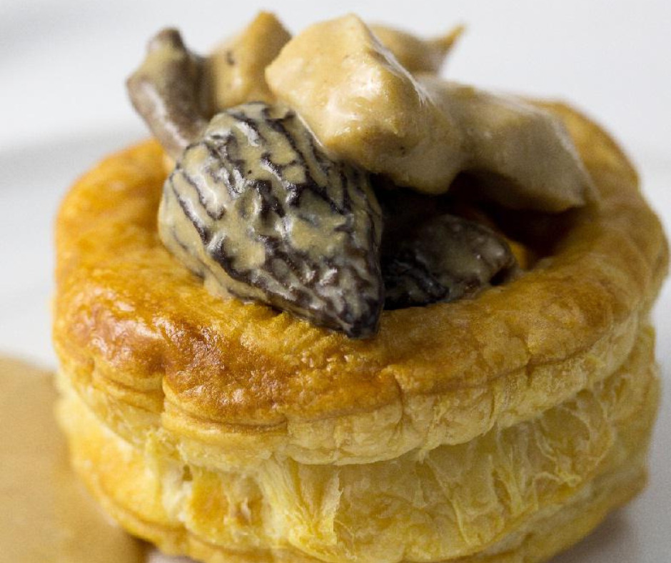 Notre bouchée aux morilles associe une pâte feuilletée dorée et croustillante à une garniture crémeuse aux champignons et morilles, pour une entrée chaude raffinée et savoureuse. Idéale pour vos repas de famille, buffets ou occasions spéciales à Dole !