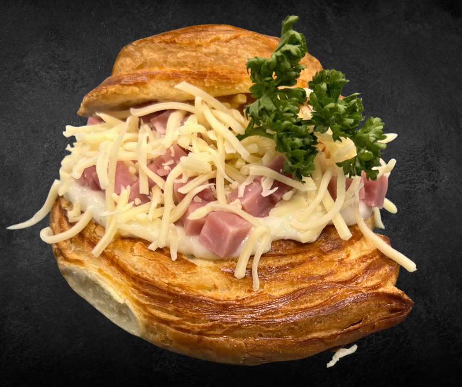 Notre bun’s jambon emmental est composé d’une garniture savoureuse jambon emmental et d’une sauce béchamel enveloppée dans une pâte moelleuse et dorée.