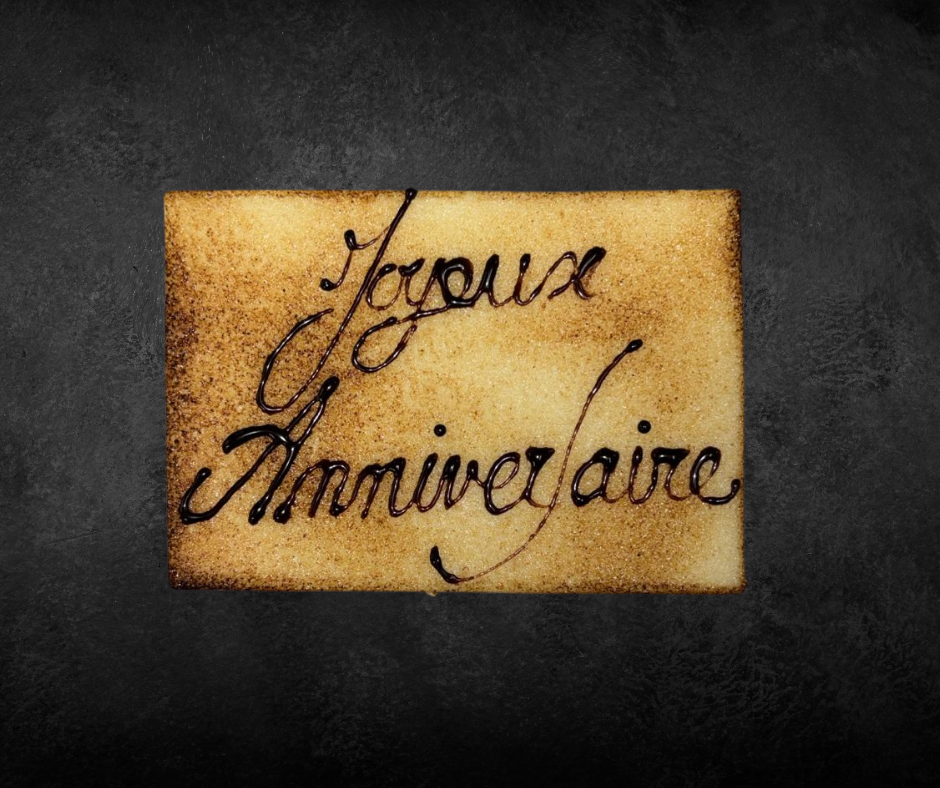 Notre Plaque Pâtissière Amande est idéale pour personnaliser vos desserts avec un message comme Joyeux Anniversaire. Délicate et élégante, elle apporte une finition soignée et gourmande à vos gâteaux.